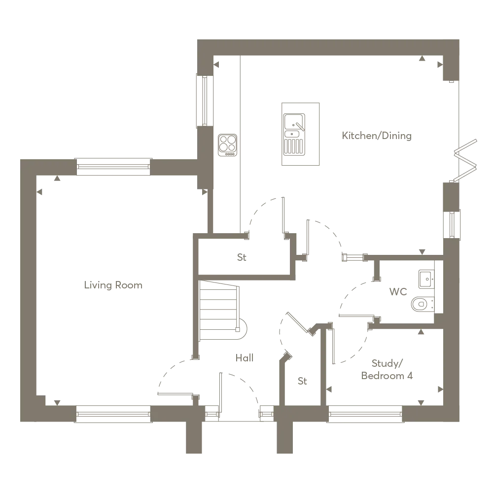 The ground floor features a stylish open-plan kitchen and dining area, complete with bi-fold doors that connect the home to the garden. A separate study provides a dedicated space for work or quiet focus. Upstairs, three well-proportioned bedrooms offer comfort and privacy, with the primary suite enjoys its own private en suite.