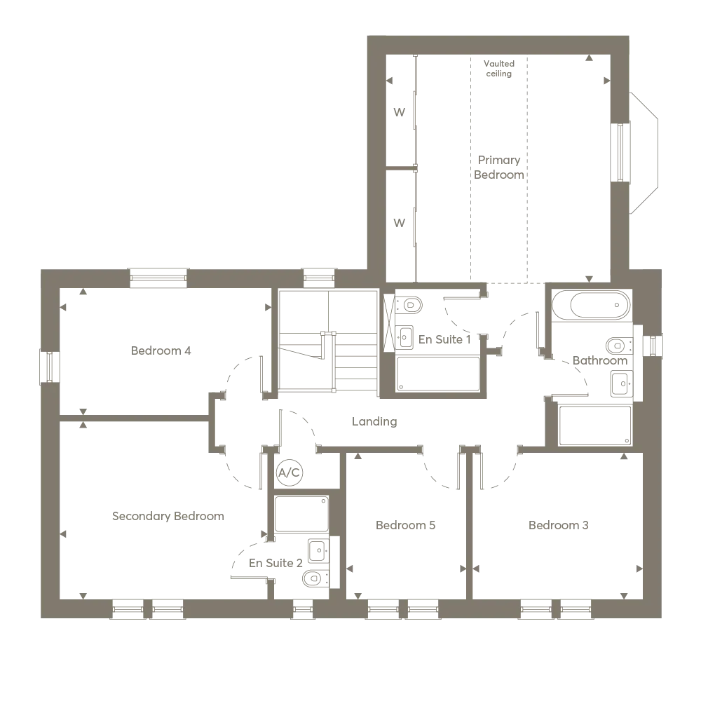 Upstairs, you’ll find five well-proportioned bedrooms , with both the primary and secondary bedrooms enjoying their own private en suites.